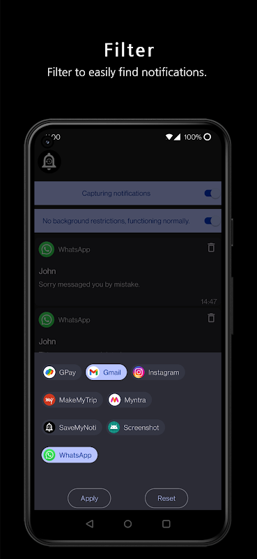 SaveMyNoti แอพ notisave เพื่อช่วยชีวิต คุณสามารถกรองการแจ้งเตือนล่าสุดและที่ผ่านมาได้ (นับจากวันที่ติดตั้งแอป) และตรวจสอบข้อมูลสำคัญที่คุณอาจพลาดไป สิ่งใดก็ตามที่ปรากฏเป็นการแจ้งเตือน ไม่ว่าจะเป็นอีเมล SMS หรือข้อความ/การสื่อสารบนแอปโซเชียลมีเดียใดๆ จะถูกสำรองข้อมูลโดยอัตโนมัติ