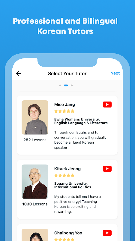 Say เป็นแอพที่ดีที่สุดสำหรับการติวภาษาเกาหลีออนไลน์แบบตัวต่อตัวกับผู้เชี่ยวชาญเหล่านี้ ด้วยแอพที่ออกแบบมาอย่างสวยงามของเรา คุณจะสามารถกำหนดเป้าหมาย ค้นหาติวเตอร์ที่สมบูรณ์แบบของคุณ และทำให้ภาษาเกาหลีเป็นส่วนหนึ่งของไลฟ์สไตล์ของคุณได้