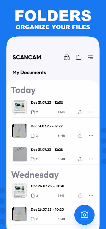 เปลี่ยนโทรศัพท์ของคุณให้เป็นเครื่องสแกนที่มีประสิทธิภาพด้วยคุณสมบัติการสแกนอัจฉริยะที่รวดเร็วและใช้งานง่ายของ ScanCam ช่วยให้คุณทำงานได้เร็วขึ้นและประหยัดเวลา ดาวน์โหลด ScanCam เพื่อสแกน บันทึก และแชร์ไฟล์ในรูปแบบ PDF และ PNG ได้ในพริบตา
