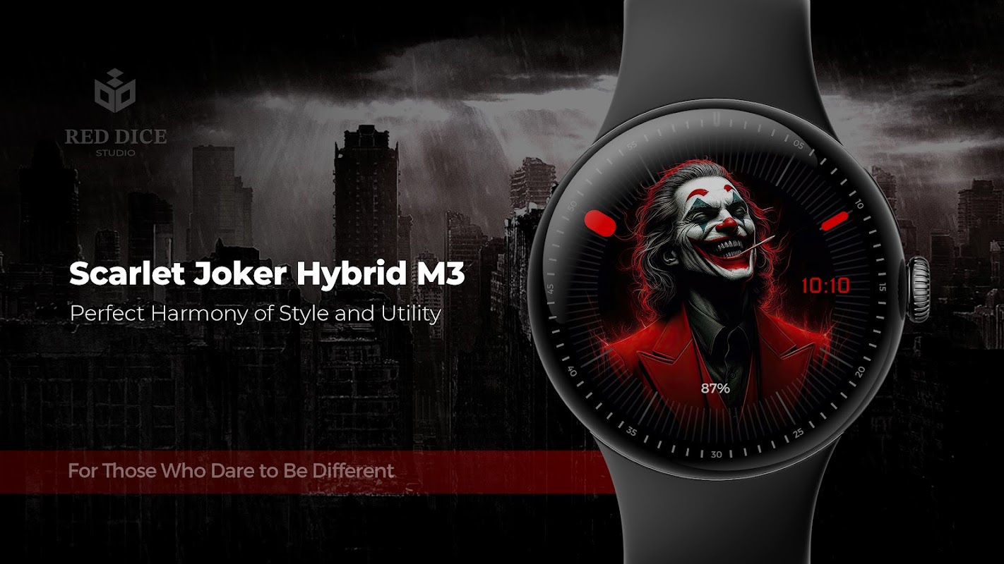 ปลดปล่อยเสน่ห์อันลึกลับของ Scarlet Joker Hybrid M3 หน้าปัดนาฬิกาที่รังสรรค์ขึ้นอย่างมีเอกลักษณ์เฉพาะตัว ผสานความงามอันมืดหม่นและน่าเกรงขามเข้ากับดีไซน์ไฮบริดที่ทันสมัย ด้วยคุณสมบัติอันน่าหลงใหลและโหมด Always-On Display (AOD) หน้าปัดนาฬิกานี้จึงมอบบุคลิกที่โดดเด่นและโดดเด่นให้กับสมาร์ทวอทช์ของคุณ