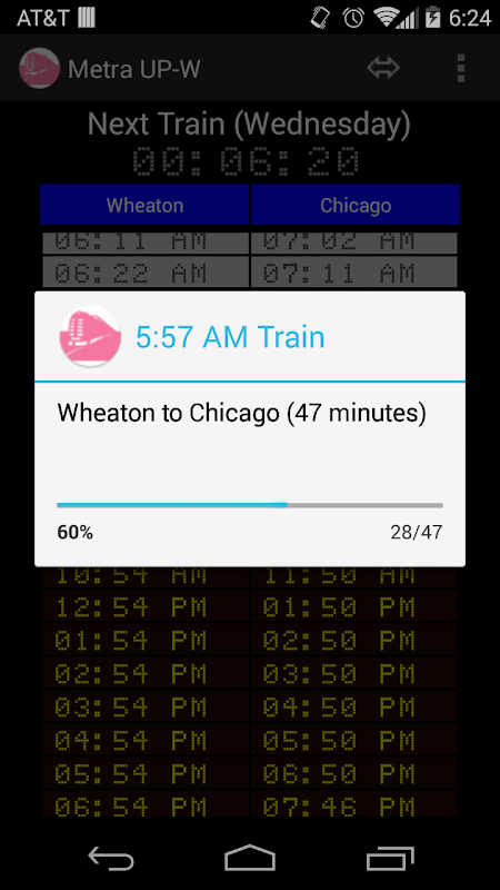 เต็มเมตรกำหนดการ UP-W และนาฬิกานับถอยหลังสำหรับรถไฟขบวนถัดไป