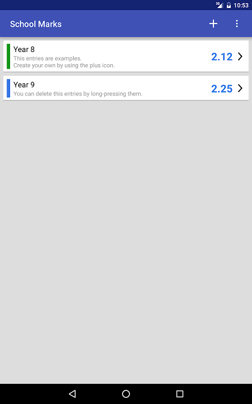 With School Marks you never need to ask again what your last mark in e.g. physics was. Also you never have to figure out what's your current average. From now on you can manage all your marks organized in one app. Your average will be calculated automatically.