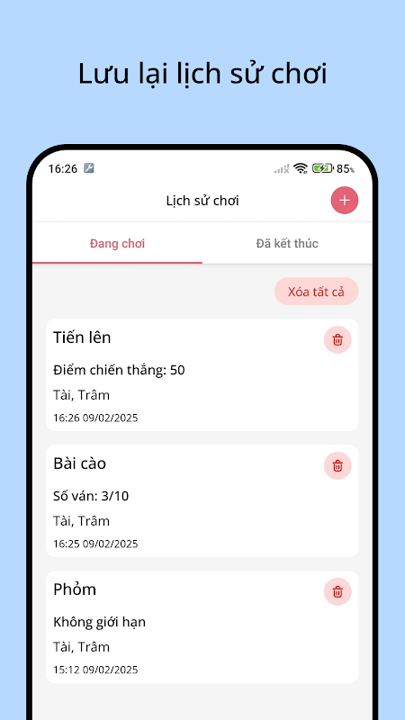 คุณกำลังเล่นไพ่ Tiến lên (โป๊กเกอร์เวียดนาม), Phỏm (รัมมี่เวียดนาม), แบล็คแจ็ค หรือเกมกระดานอื่นๆ กับเพื่อนๆ แต่ไม่มีปากกาและกระดาษสำหรับบันทึกคะแนนใช่ไหม? กังวลว่าจะทำผิดพลาดหรือคำนวณคะแนนผิดพลาดขณะที่กำลังสนุกกับเกมอยู่หรือเปล่า? แอปบันทึกคะแนนเกมไพ่คือทางออกที่สมบูรณ์แบบสำหรับคุณ!
