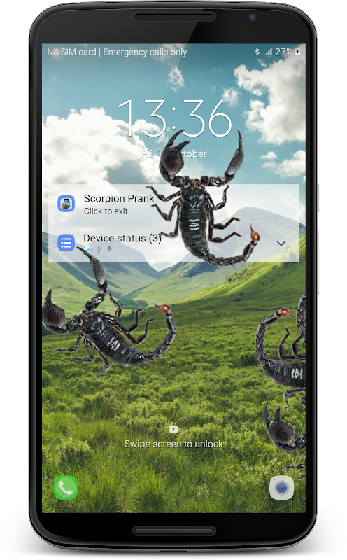 In this app, you will see scorpion run on your phone screen no matter you are listening to music, playing game or surf web. It will be fun to prank your friends and let's see how they act when see animal run all over screen.