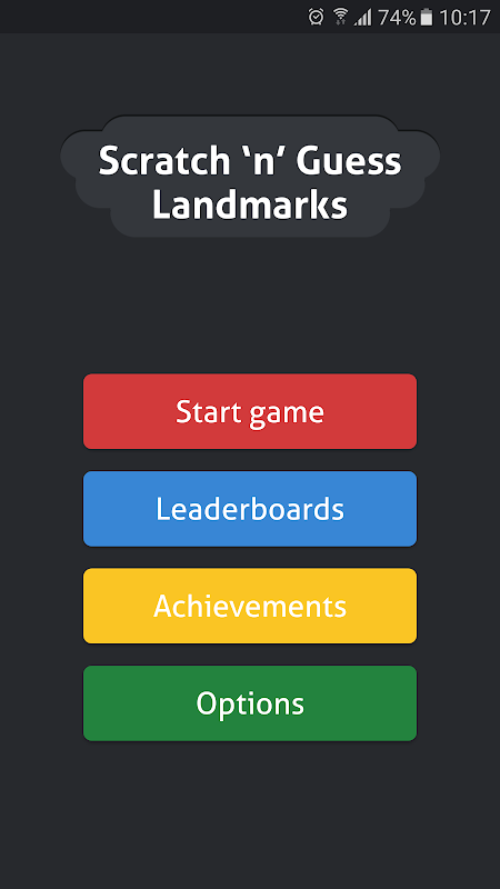 The game has a bunch of levels grouped in different worlds. Each level has a hidden picture of a landmark. Scratch the screen until you figure out what landmark is displayed on the picture. Once you recognize the hidden landmark select the correct answer from the options provided. Each correct answer earns you points, but have in mind that you shouldn't scratch the whole area. The less you scratch, the more points you will get. The yellow bar bellow the image shows how much more remains for you to scratch.