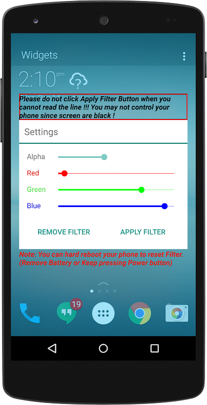 If any mistake, you cannot control your phone since it black screen. Just reboot your phone and remove filter.