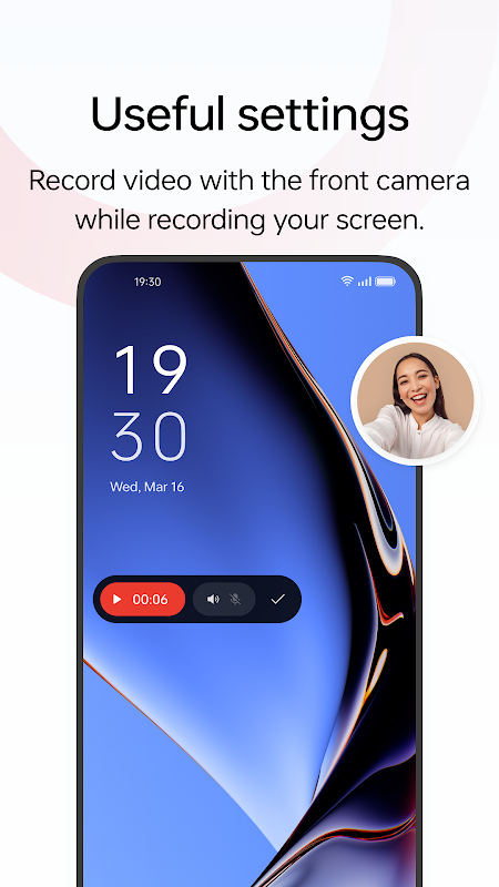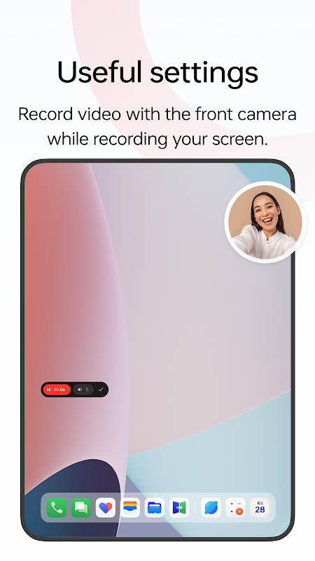 - คุณสามารถบันทึกวิดีโอด้วยกล้องด้านหน้าพร้อมกับบันทึกหน้าจอของคุณ