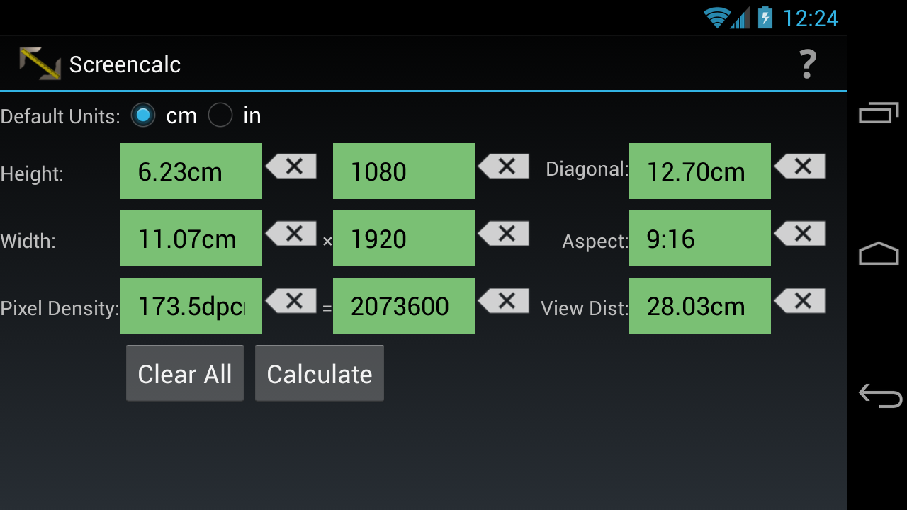 Calculates display screen parameters: width, height, diagonal, pixel density etc