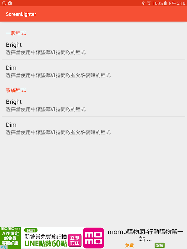 เมื่อแอปพลิเคชันในหมวดหมู่ Bright ทำงานอยู่ ScreenLighter จะเปิดหน้าจอไว้