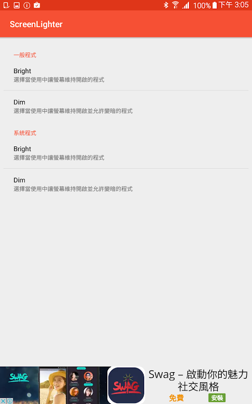 เมื่อแอปพลิเคชันในหมวดหมู่สลัวทำงาน ScreenLighter จะเปิดหน้าจอค้างไว้และอนุญาตให้สลัว