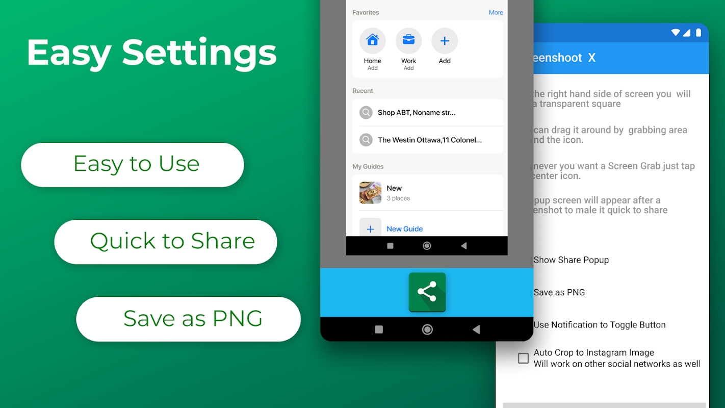 ดาวน์โหลด Screenshot X ซึ่งเป็นเครื่องมือหน้าจอฟรีสำหรับจับภาพหน้าจอและแบ่งปันภาพหน้าจอได้ทันที เพียงเปิดแอป (เครื่องมือสนิป) แล้วไอคอนจะปรากฏบนหน้าจอโทรศัพท์ของคุณ แตะที่ไอคอนทุกครั้งที่คุณต้องการจับภาพหน้าจอ จากนั้นคุณสามารถแชร์หรือบันทึกภาพหน้าจอผ่านแอปอื่นๆ ได้ทันที: แอปส่งข้อความ อีเมล คลาวด์ การแก้ไขรูปภาพ หรือเครื่องมือโทรศัพท์อื่นๆ!