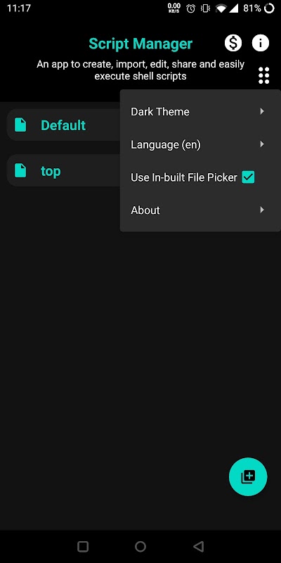 Script Manager is a simple and very basic app, with a beautifully designed dark/light user interface, which offers the following things
