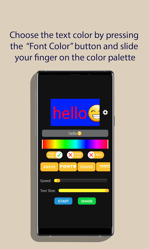 5.- Slide your finger over palette color to choose the text color,