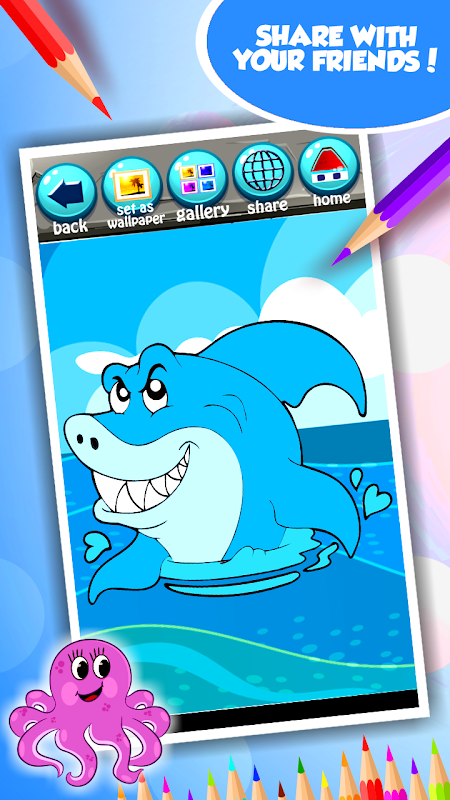 Meet the scariest shark and do not be afraid of it. It is just one of the illustrations and you are going to work on it to make the best photo out of it. You are happy when you see the hand icon because you know that you can tap it whenever you wish and then you will be able to zoom in or out the picture and devote yourself to the tiniest details of the picture. Let the popular sea creatures coloring images amuse you for hours and soon they will become your favorite pastime. It will be the perfect opportunity for you to express your creativity while you work on the coolest sketches of the enchanting seashells. Look one of them is open and in the middle of it is the shining precious pearl. Save what you have done in the gallery where you can browse it whenever you wish. Set your artwork as a wallpaper on your tablet and give it the latest modern look. Download free the best Sea Creatures Coloring Book and have fun painting the enchanting illustrations.