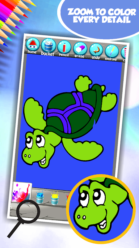 Are you ready to search for the newest way to entertain yourself and your family members? Just visit the market and check out the coolest collection of the mesmerizing illustrations. Download free the latest Sea Creatures Coloring Book and dive into the ocean. There you will be able to encounter all the animals that live under the water. You were always enchanted by them and now you have the chance to observe them and embellish them with mesmerizing shades. Click on the paint bucket and create the most beautiful tropical fish and let that photo decorate your phone magnificently. Your screen has never been prettier and now you will stand out from the crowd with it. You cannot believe that you have created the masterpiece of art. Do not forget to share it with your friends to amaze them. They will be startled with the newest sea creatures coloring application. They still cannot believe that there is the opportunity to listen to the relaxing music from the background while playing the awesome top game.