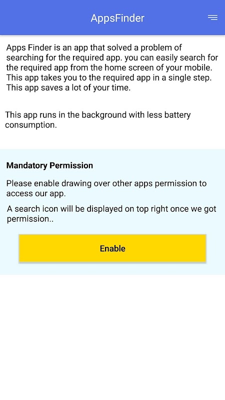It is to find out the apps in your mobile, once it moves to selected the app
