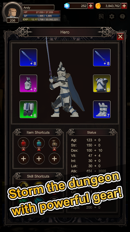 แทรกซึมเข้าไปในดันเจี้ยนที่สร้างขึ้นโดยอัตโนมัติและเอาชนะมอนสเตอร์จำนวนมากเพื่อยกระดับฮีโร่!