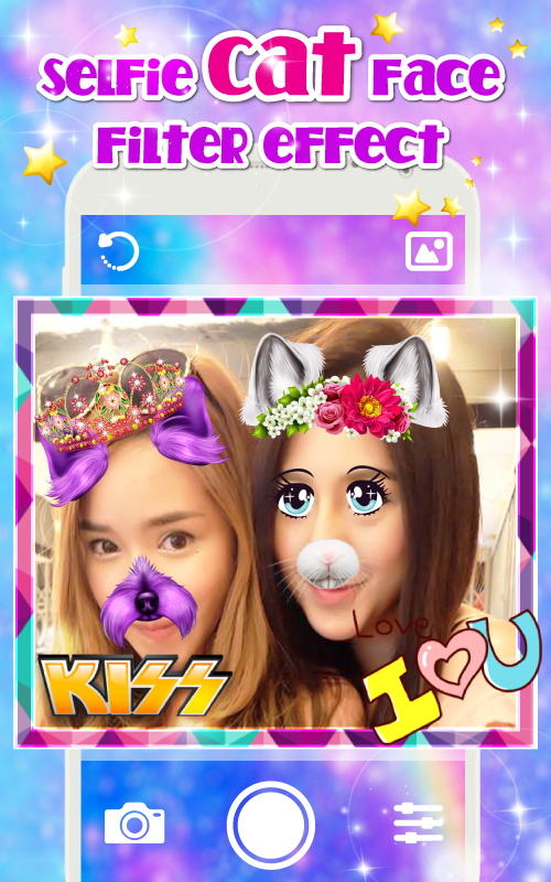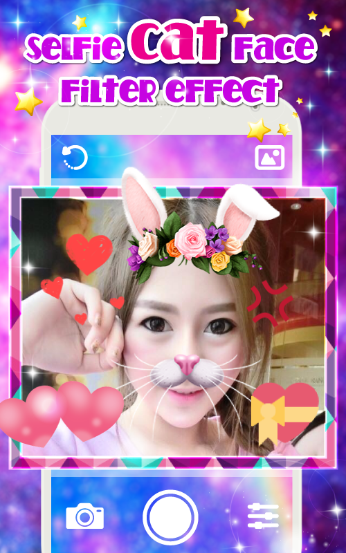 Selfie Cat Face Filter Effect and camera effects like snap pro In less than a minute on snap, you'll be making faces and having fun. Let me show you how easy it is! I created a little graphic . Add smiley cat face - rainbow filter - cute rabbit - anime eyes - tears - text - stickers and Cartoon,doggy and etc... to your selfie in just a few seconds! snap photo filters and stickers is best free alternative to emoji your face application for free and stickers lets you create Amazing Selfies.