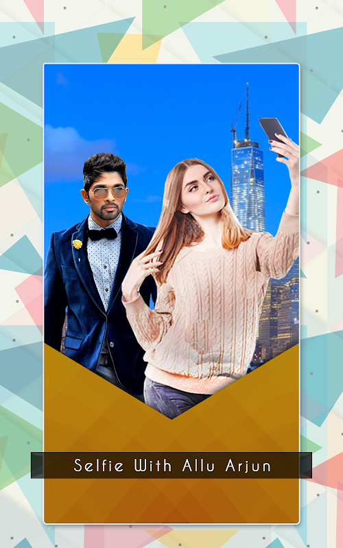 Selfie With Allu Arjun have collection of stylish and lovely Allu Arjun images.with this application Select a photo from gallery or capture it with your camera phone in real time.crop it with your choice and you Can add text to the frame, Can change the size, color and font of the text at any time. and also you can add stickers and also make it more attractive with applying effects in your image.this is the best way to make jealous your friends to shown them that you was met Allu Arjun and click selfie with her..