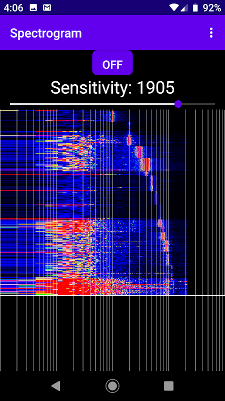 spectrogram นี้รวบรวมตัวอย่าง 1024 ตัวอย่างด้วยอัตราการสุ่มตัวอย่าง 44,100 เฮิร์ตซ์ทุก ๆ 150 มิลลิวินาที ตัวอย่าง 1024 ชุดแต่ละชุดสอดคล้องกับเส้นแนวนอนเดียวในหน้าจอตามที่แสดงในภาพหน้าจอ
