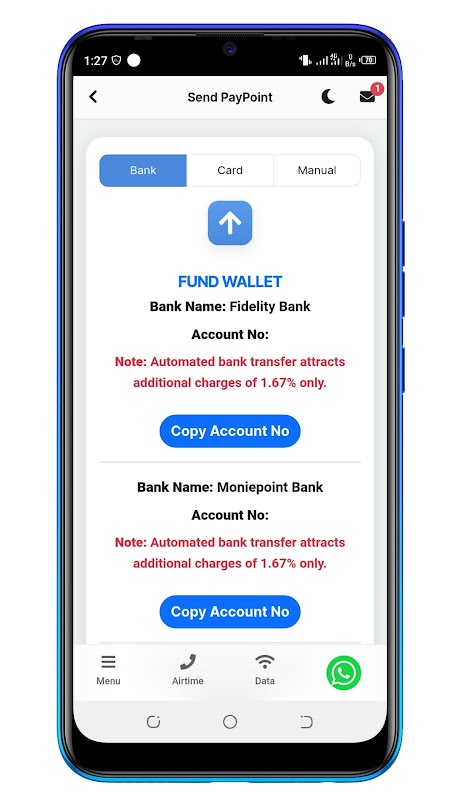 We offer instant recharge of Airtime,Databundle,CableTv, electricity bills payment,bulk SMS, recharge card and many more.