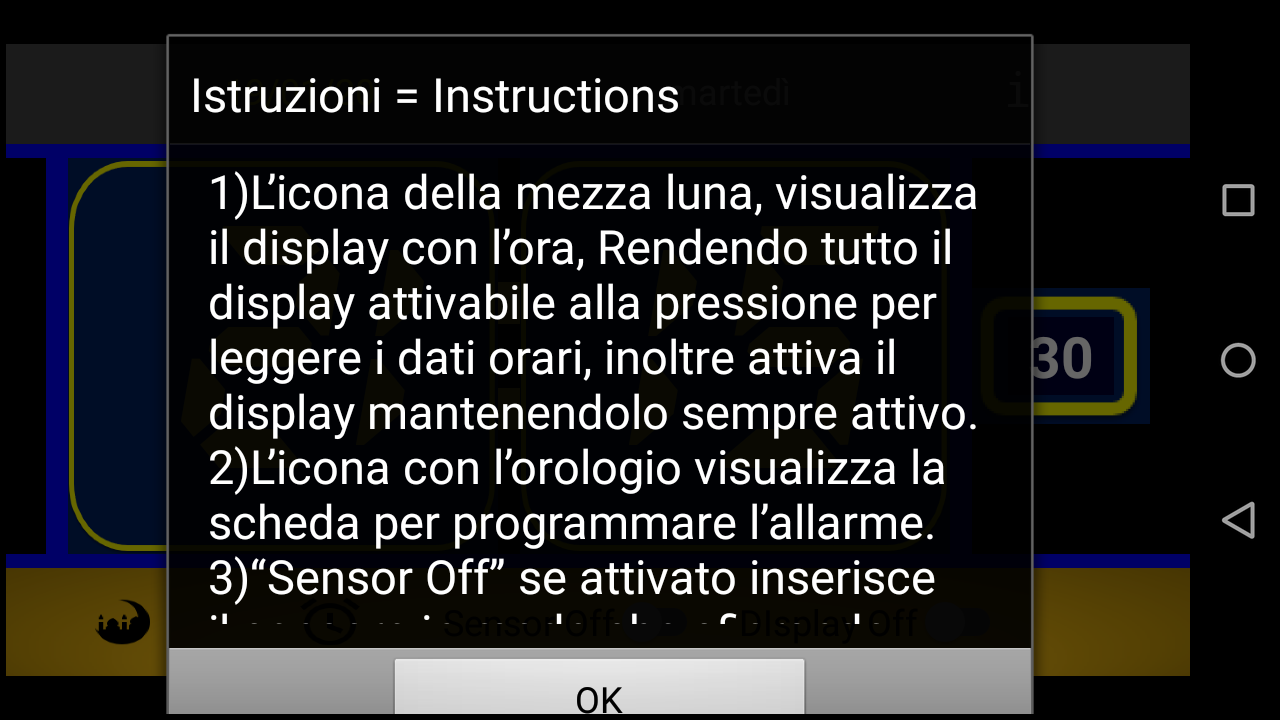 Potente applicazione che permette con il solo sfioramento dello schermo (se attivato il sensore nei dispositivi che ne sono provvisti) di ascoltare vocalmente, l'ora, la data e il giorno della settimana, sia in italiano che in inglese.