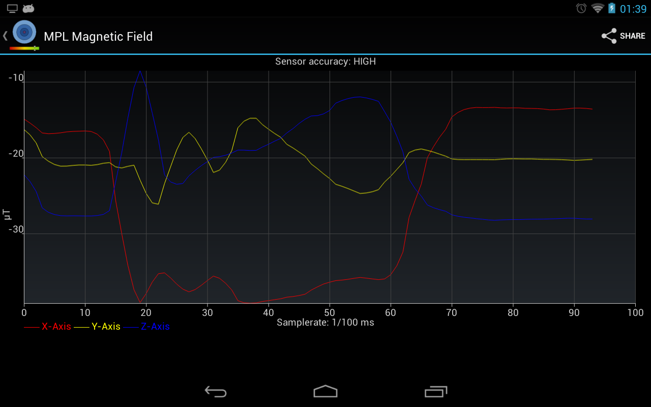 Provides low level access to the devices sensors. Readout is presented in a graph for easy side by side comparison with other devices.