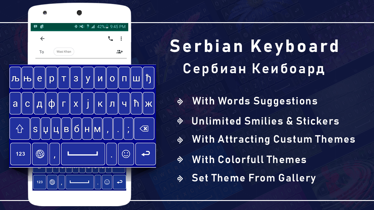 Let’s colored your simple mobile keyboard layout with New Serbian colorful themes keyboard & colored keyboard background. We are excited to give you colorful keyboard layout with themes color for excitement of custom keyboard. If you are 😟 fans of customize apps to personalize your keyboard background then keyboard theme is 🌼 best design keyboard with colorful app theme for Instagram, facebook, whatsapp, twitter etc.
