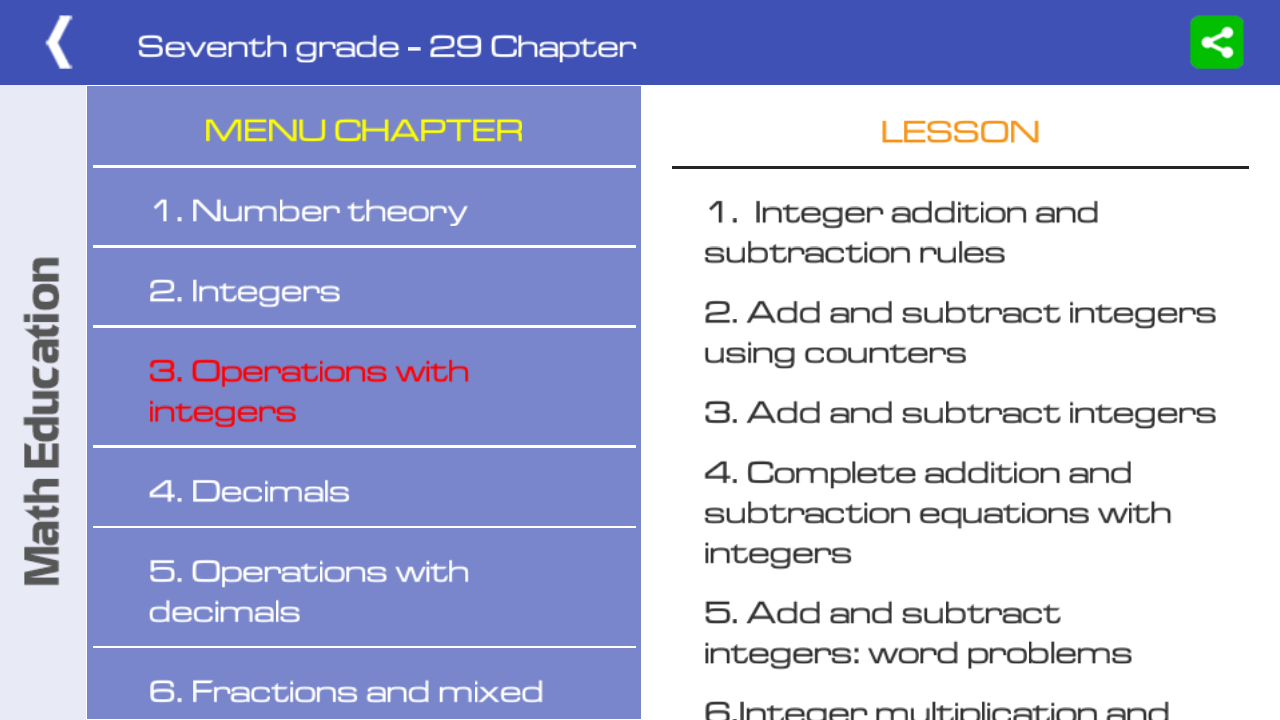 Seventh grade math: covers basic skills proportional relationships, rational numbers and more.