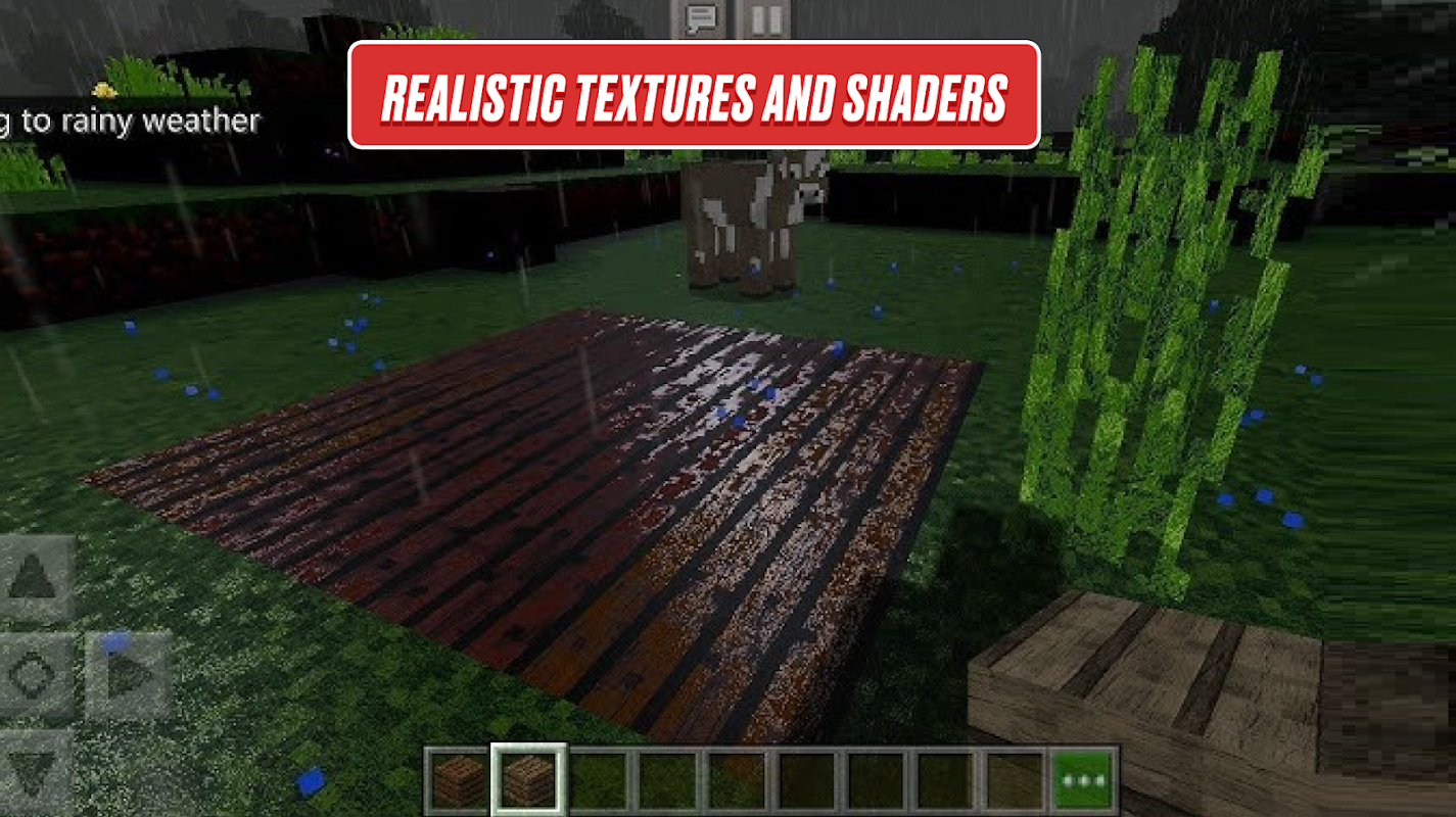 แผนที่และพื้นผิวจะเปลี่ยนไปอย่างมาก ชุดเชดเดอร์และชุดพื้นผิวซึ่งนำเสนอที่นี่จะทำให้แผนที่งานฝีมือของคุณดูสมจริงที่สุดเท่าที่จะเป็นไปได้ด้วยการเพิ่ม HD Shaders และพื้นผิวสำหรับ MC Pocket Edition การปรับปรุงสามารถสังเกตเห็นได้ใน Ray Tracing, Shadow และ Water Tracing ซึ่งทั้งหมดนี้ทำให้ดูสมจริงมาก การเอาชีวิตรอดในแผนที่ของคุณจะกลายเป็นความสุขอย่างหนึ่ง เนื่องจากกราฟิกจะปรับปรุงหลายเท่าในโหมดเอาชีวิตรอด