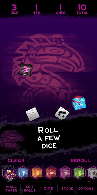 ลูกเต๋าที่ออกแบบมาเป็นพิเศษด้วยธีม Shadowrun โดยแต่ละภาพเคลื่อนไหวและเสียงที่เป็นเอกลักษณ์
