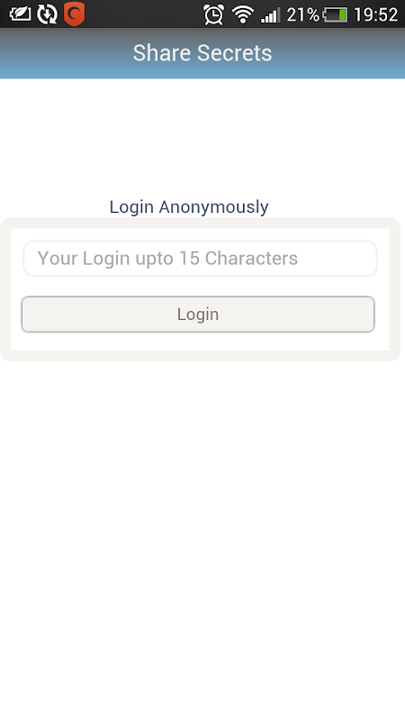 This application can be used by login anonymously and then you can share secrets and get comments on your secrets from other users. You can also comment on any shared secret you like.