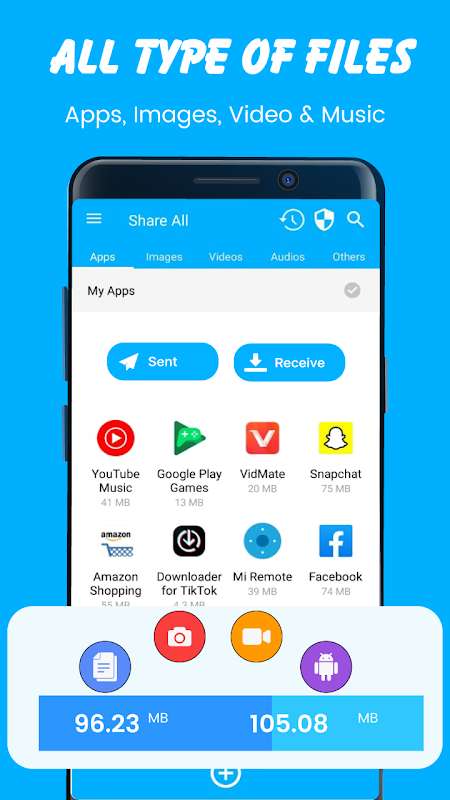 ยินดีต้อนรับสู่แอปแชร์ด่วน แชร์ไฟล์ ภาพยนตร์ วิดีโอ แอป รูปภาพกับโทรศัพท์ Android เครื่องอื่นขณะออฟไลน์โดยไม่ใช้อินเทอร์เน็ต ส่งได้ทุกที่และรับไฟล์ทุกประเภทในไม่กี่วินาทีด้วยแอพถ่ายโอนไฟล์และแชร์ที่ใช้งานง่ายของเรา การแชร์ไฟล์อย่างรวดเร็ว & การส่งไม่จำกัดด้วยความเร็วสูงสุด แชร์ทำให้ผู้ใช้สามารถส่งไฟล์หลายไฟล์พร้อมกันได้ ถ่ายโอนไฟล์ประเภทใดก็ได้จากอุปกรณ์เครื่องหนึ่งไปยังอีกเครื่องหนึ่งโดยไม่ต้องใช้ข้อมูล WIFI และ 4G/5G