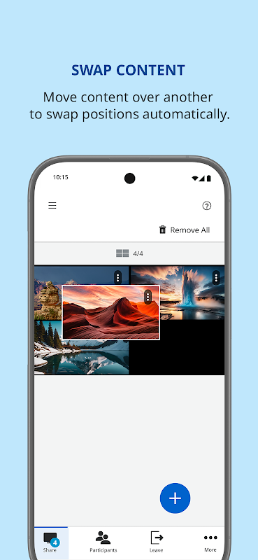 ใช้แอปเพื่อสะท้อนหน้าจออุปกรณ์ของคุณไปยังจอแสดงผล คุณยังสามารถแบ่งปันภาพหรือวิดีโอจากอุปกรณ์ของคุณหรือภาพที่ถ่ายโดยใช้กล้องของคุณ สามารถแชร์หลายรายการได้พร้อมกัน โดยปรากฏคู่กันบนจอแสดงผล