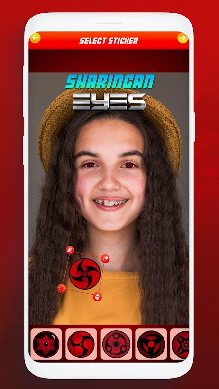 Sharingan Eyes Camera Editor 👁 Eye Changer App has many powerful photo editing features that are easy to use. Use sharingan eye changer selfie camera to take a selfie or upload photo from your phone and change your eyes color quickly and easly. Browse our collection of sharingan eyes stickers and choose the one that you want to add on photo. Use your fingers to move and resize eye stickers to fit them perfectly into the picture. With our sharingan eye editor you can also add photo frames and effects and draw over photo. Add text to photos and write anime quotes to make your photos look like scenes from anime cartoons. Do not forget to save your new sharingan photo montage or share it with your friends or family. Be sure that everyone will be impressed with your photo editing skills.