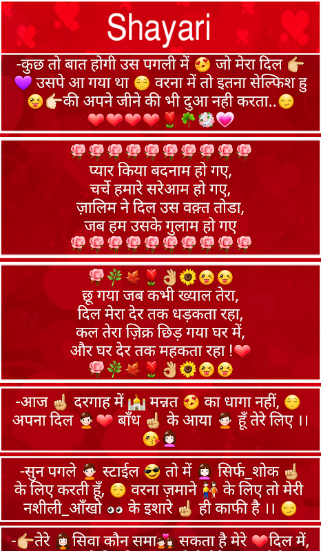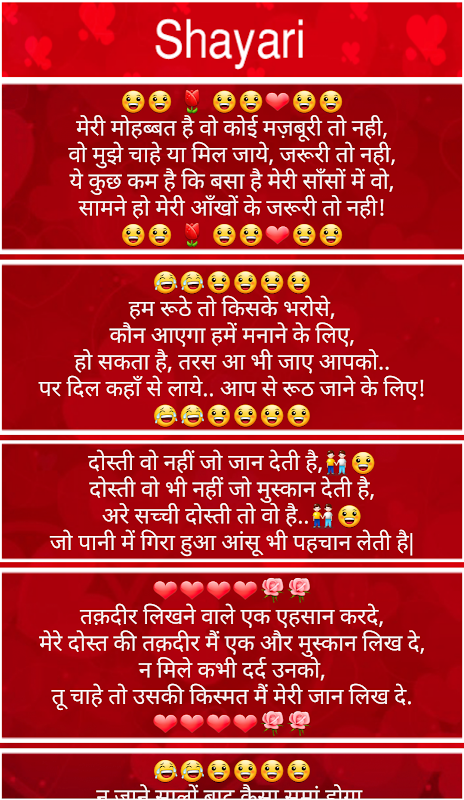 Shayari application Contain brings best collection of Hindi and English Shayari.