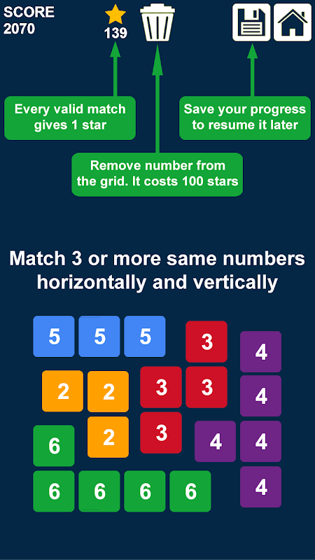 Enjoy this mix of number merge puzzle, bubble shooting and match-3 games. You will fall in love with this innovative and brain teaser puzzle game immediately.