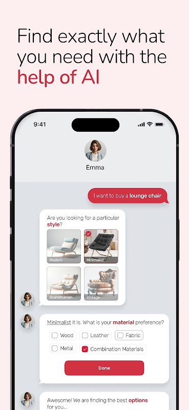 ผู้ช่วยที่ขับเคลื่อนด้วย AI - Emma ช่วยคุณตัดสินใจว่าจะซื้ออะไรโดยการถามคำถามที่กำหนดเองเพื่อช่วยกำหนดความต้องการของคุณ จากนั้นแสดงผลิตภัณฑ์ที่ตรงกับข้อกำหนดเหล่านั้น