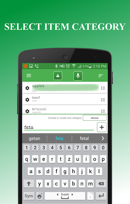 - ป้อนข้อมูลด้วยเสียง! เพิ่มรายการไปยังรายการช้อปปิ้งของคุณด้วยคำสั่งเสียง - ง่ายมากที่จะเพิ่มรายการลงในรายการเพียงแค่พูดคุยหลังจากที่คุณคลิกไอคอนไมโครโฟนเพื่อให้แอปเริ่มฟังคุณ สิ่งที่คุณต้องทำคือพูดชื่อรายการที่คุณซื้อ ต้องการเพิ่มเช่น: นม, เบียร์, โซดา, กาแฟ, กล้วย, มิลค์เชค, พิซซ่าและแอพจะจดจำสิ่งที่คุณพูดและทำให้แต่ละรายการในรายการ
