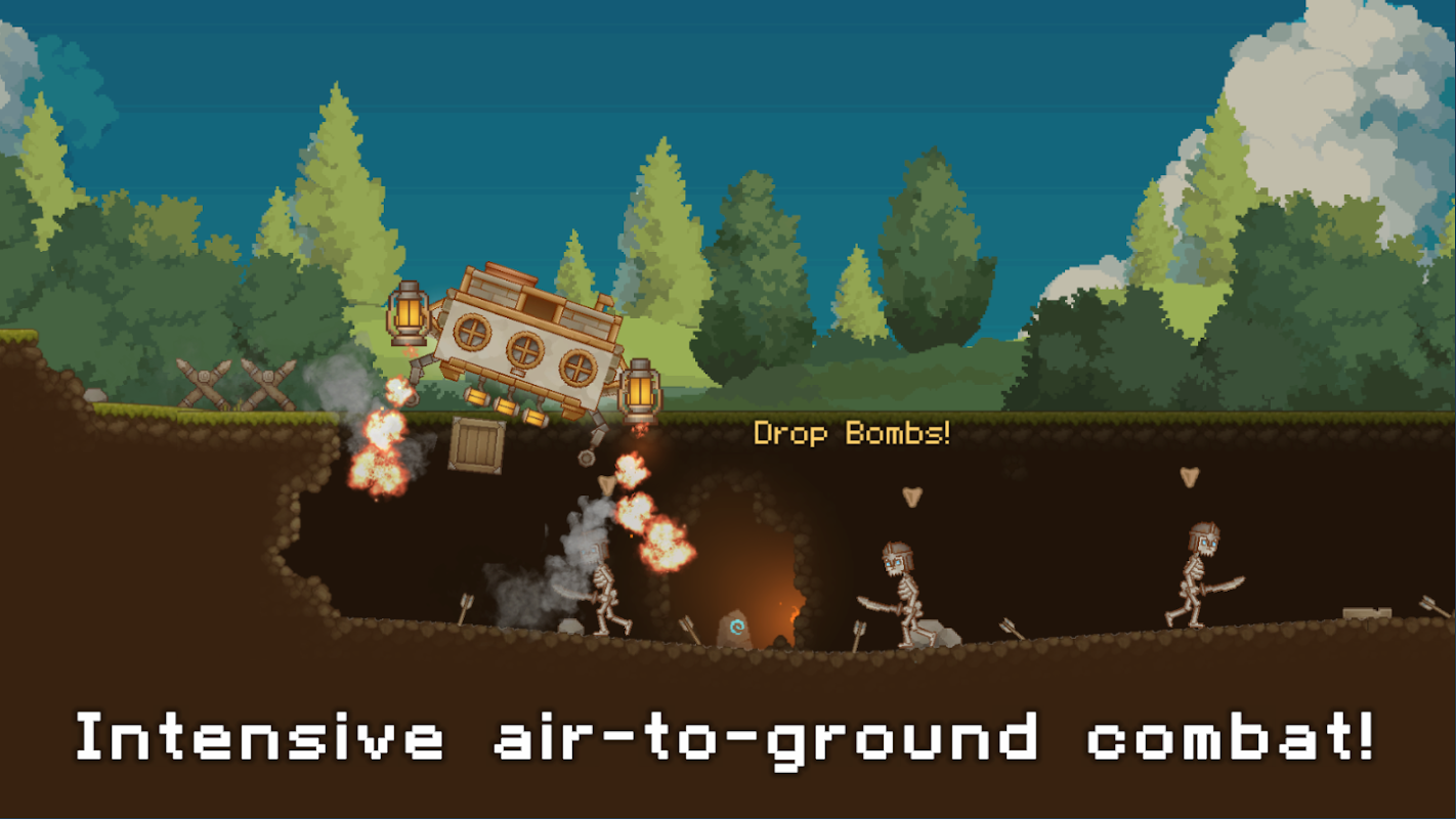 สร้างและปกป้องฐานของคุณ! Undead กำลังเพิ่มขึ้นและมีเพียงคุณเท่านั้นที่สามารถช่วยให้หมู่บ้านของคุณต้านทานได้! คลื่นของศัตรูจะผลักดันแนวป้องกันของคุณ คุณจะต้องรวดเร็วและแม่นยำเมื่อทิ้งระเบิดจากด้านบนและรวบรวมเสบียงเพื่อให้ฐานของคุณปฏิบัติการได้