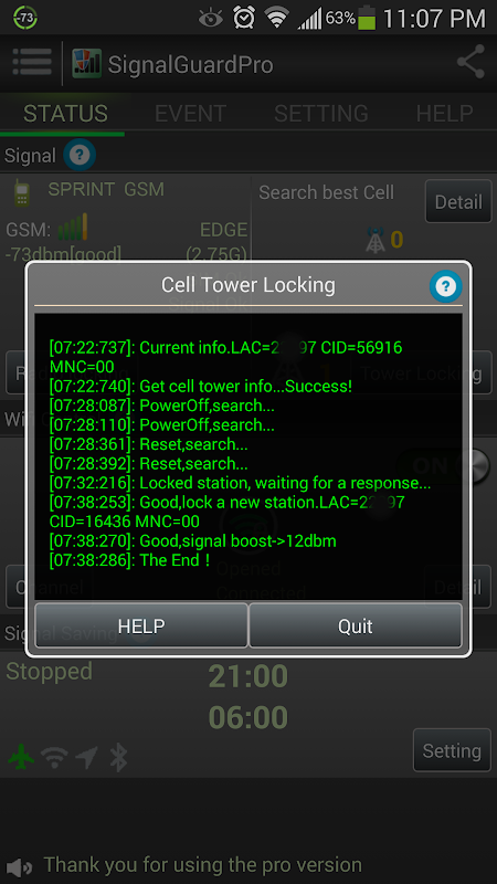 SignalGuardPro เวลาจริงการตรวจสอบคุณภาพของสัญญาณและสภาพการทำงานของ phone.It มือถือของคุณสามารถให้คำเตือนก่อนแหวนสั่นสะเทือนและ LED สามวิธีเมื่อความผิดปกติของสัญญาณที่เกิดขึ้นเช่นการป้อนสถานที่เช่นสถานีรถไฟใต้ดิน, ห้องใต้ดินห้องคอมพิวเตอร์และอุโมงค์หรือเกิดจาก uncorrectly การตั้งค่า baseband โดยอัตโนมัติและสามารถเรียกคืนสัญญาณเครือข่ายภายใน 6 วินาที (เร็วที่สุด) สอดคล้องกับการตั้งค่าพารามิเตอร์ของสัญญาณ ขั้นตอนการเรียกคืนทั้งหมดจะถูกบันทึกไว้ในฐานข้อมูลซึ่งอาจจะมีการตรวจสอบในภายหลัง