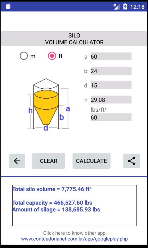 This calculator was developed to facilitate the calculation of volumes of various types of silos.