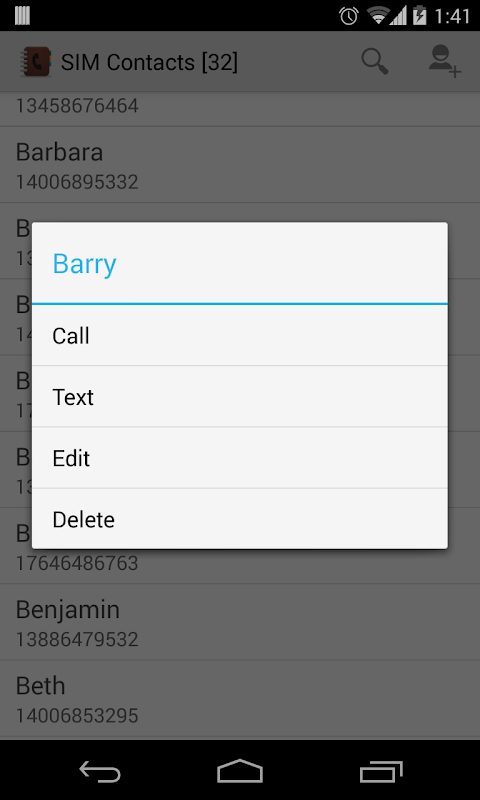 โปรแกรมง่ายๆที่มี UI สะอาดและเงาในการจัดการรายชื่อซิมการ์ดของคุณ ขณะนี้การดำเนินการดังต่อไปนี้ได้รับการสนับสนุน