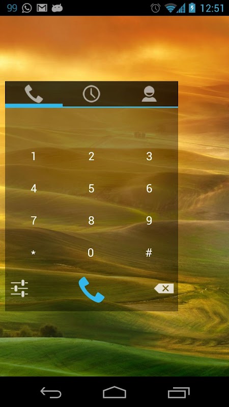 The widget offers a dial pad, shows your call log or all your contacts. The widget is resizeable and the log and contacts tab are scrollable too.