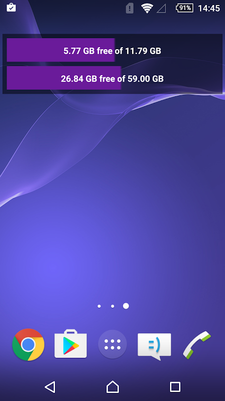 เครื่องมือนี้โดยทั่วไปแสดงให้คุณเห็นการแสดงภาพที่เรียบง่ายของพื้นที่ที่ใช้ในการเก็บรักษาที่มีอยู่ในอุปกรณ์และข้อความคำแนะนำของคุณกับข้อมูลรายละเอียดเกี่ยวกับพื้นที่ที่ใช้ ที่จะใช้มันก็เพิ่มไปยังหน้าจอที่บ้านของคุณโดยใช้เมนูวิดเจ็ต โปรดทราบว่าเครื่องมือนี้ไม่ได้มีหน้าจอใด ๆ ที่เกี่ยวข้องกับมันที่คุณสามารถเริ่มจากปล่อย