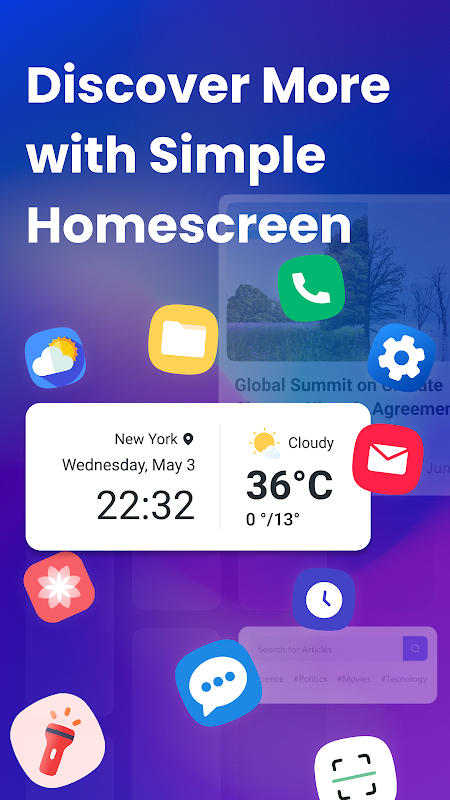 สิ่งที่ทำให้ Simple Homescreen แตกต่างคือการที่เราเน้นความสะดวกสบายและการควบคุมของคุณ UI ที่เรียบง่ายและผ่อนคลายของเราสร้างขึ้นด้วยการออกแบบที่เน้นการเข้าถึงเป็นอันดับแรก โดยใช้แบบอักษรและปุ่มขนาดใหญ่ ตัวเรียกใช้งานจะปรับให้เข้ากับคุณ โดยนำเสนอสิ่งจำเป็นในตัว เช่น สภาพอากาศและการโทรฉุกเฉิน สร้างประสบการณ์ที่น่าเชื่อถือและง่ายดาย