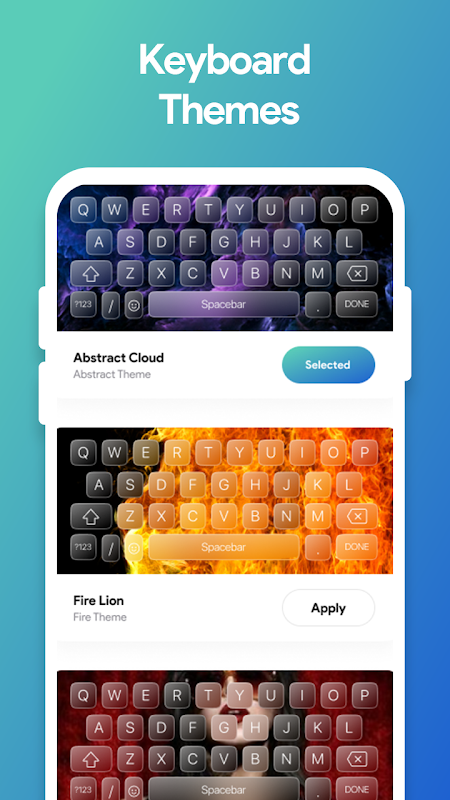 แอพคีย์บอร์ดที่เรียบง่ายมีส่วนต่อประสานกับผู้ใช้ที่เป็นมิตรมากซึ่งทุกคนสามารถเข้าใจได้แม้จะใช้งานเป็นครั้งแรกก็ตาม แป้นพิมพ์ธรรมดามีชุดธีมที่สวยงามมาก และผู้ใช้สามารถเลือกธีมที่เขาชอบได้จากรายการธีม แทปของธีมแบ่งออกเป็นสี่รายการซึ่งรวมถึง: ทั้งหมด วัสดุ นีโอมอร์ฟิค และเฉดสีหลายเฉด คุณสามารถเลือกได้อย่างง่ายดายจากสี่รายการนี้