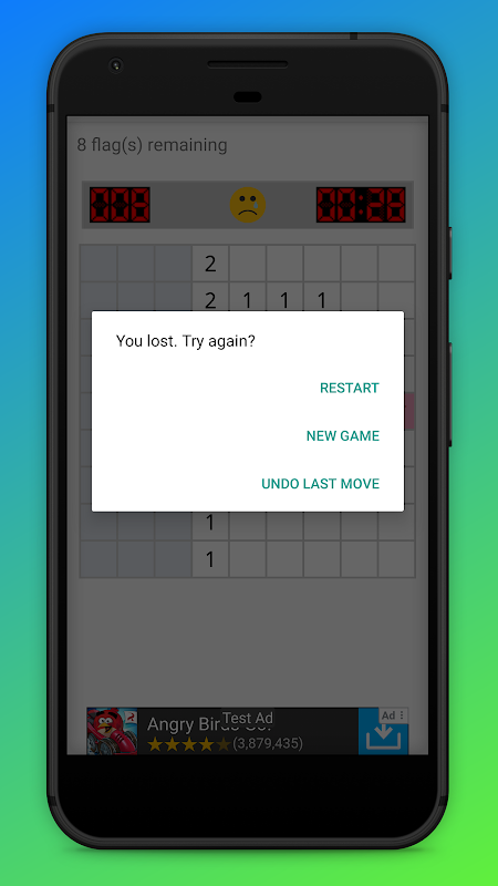 ส่วนต่อประสานผู้ใช้ที่รวดเร็วและราบรื่นด้วยกฎ Minesweeper มาตรฐาน!
