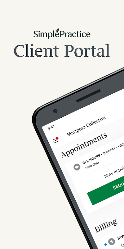 หากคุณได้รับบริการด้านสุขภาพพฤติกรรม การให้คำปรึกษา พยาธิวิทยาการพูด กิจกรรมบำบัด กายภาพบำบัด หรือบริการด้านสุขภาพอื่น ๆ โดยผู้ประกอบวิชาชีพที่ใช้ SimplePractice แอปนี้เหมาะสำหรับคุณ! แอพ SimplePractice Client Portal Android ช่วยให้คุณจัดการการดูแลคุณหรือคนที่คุณรักได้จากที่เดียวที่ปลอดภัย เชื่อมต่อกับผู้ประกอบวิชาชีพของคุณระหว่างการนัดหมายจากความสะดวกสบายของโทรศัพท์ของคุณ ข้อมูลส่วนบุคคลของคุณจะถูกเก็บไว้เป็นส่วนตัว แต่สามารถเข้าถึงได้ง่ายเพื่อความสะดวกของคุณ