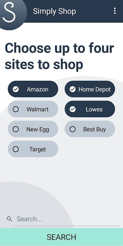 With Simply Shop you get to choose the sites you know and trust. You can search up to 4 major retail sites all with a single search. Easily tab back and forth between them to compare products, prices, and reviews. At anytime, you can launch the native website or app that you're shopping directly. Save time. Save money. It's that simple.
